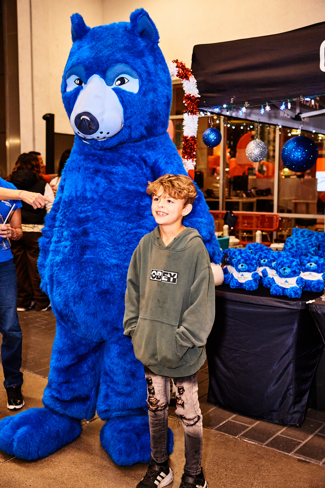 Spreading cheer with Woody, Mickey and the Pacific West mascot